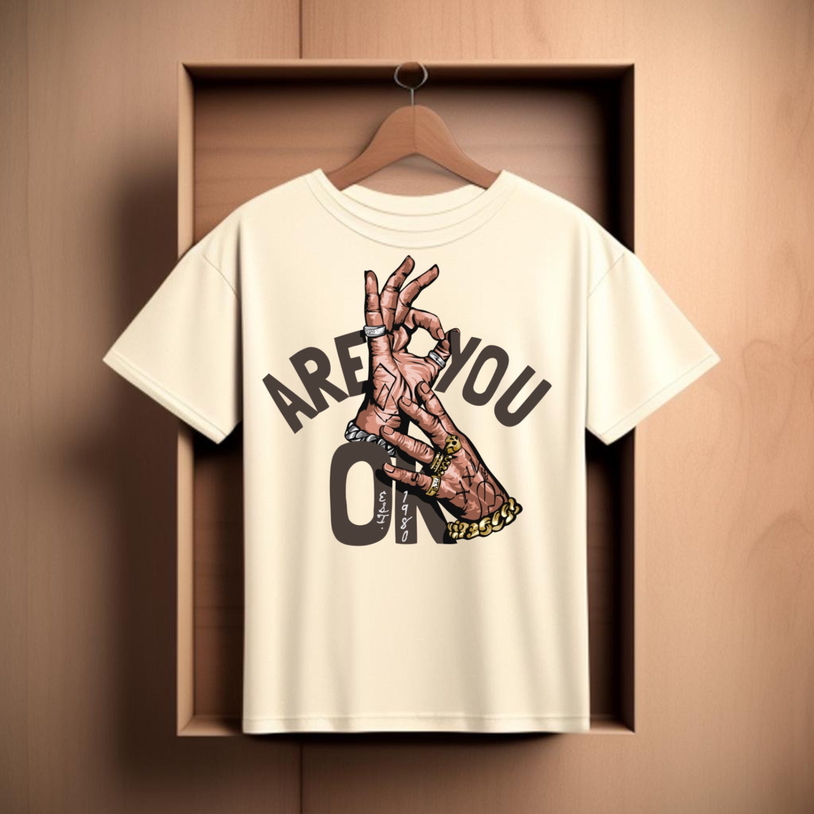 Make a statement without saying a word. The Are You OK tee combines urban edge with emotional depth — featuring bold typography and detailed hand art styled with rings and gold chains. It’s both street and soulful, designed for those who value connection as much as confidence.
