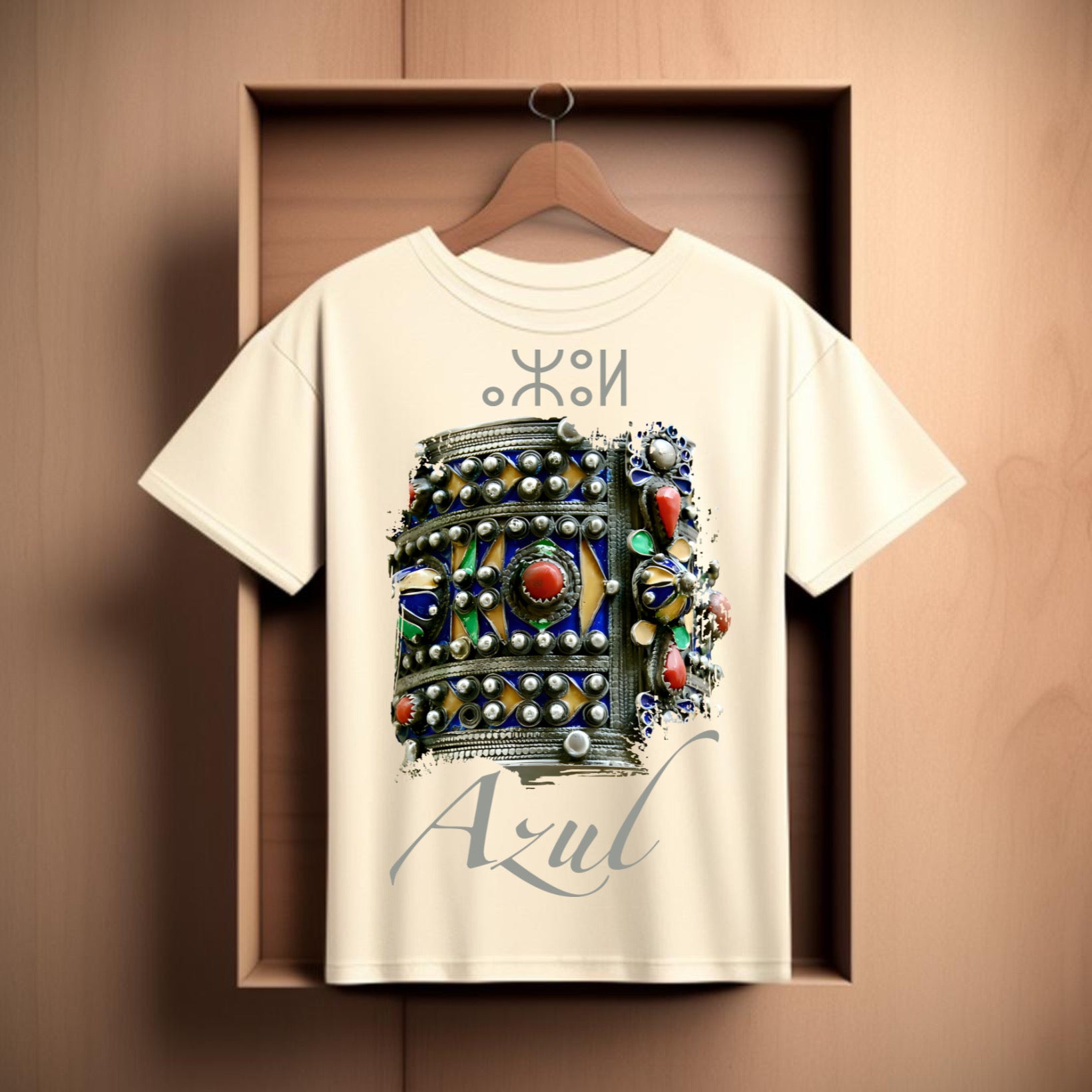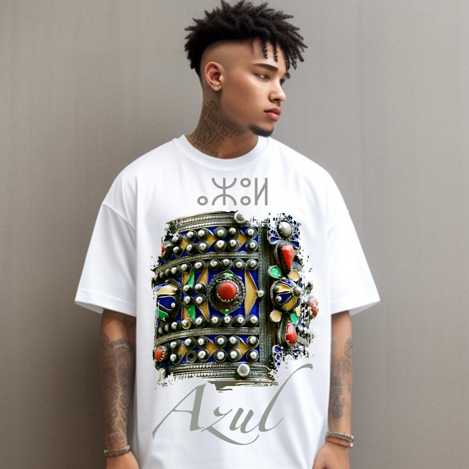 A powerful tribute to Amazigh culture — featuring the intricate silver and stone bracelet design, this piece is a wearable celebration of identity and resilience.